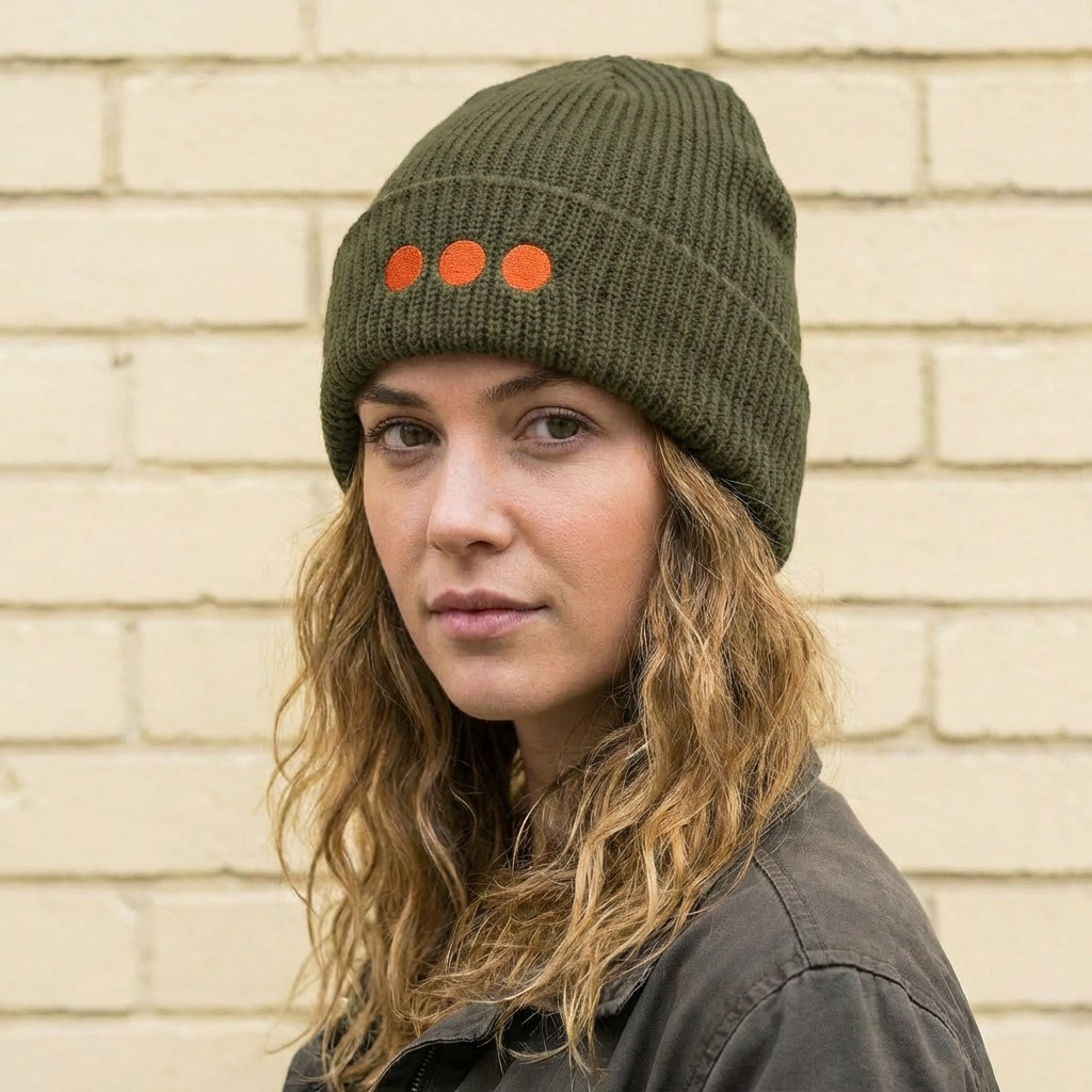 A cuffed knit beanie with an embroidered GAS triple dot, a reminder that there is always more good to be done. Never settle.
