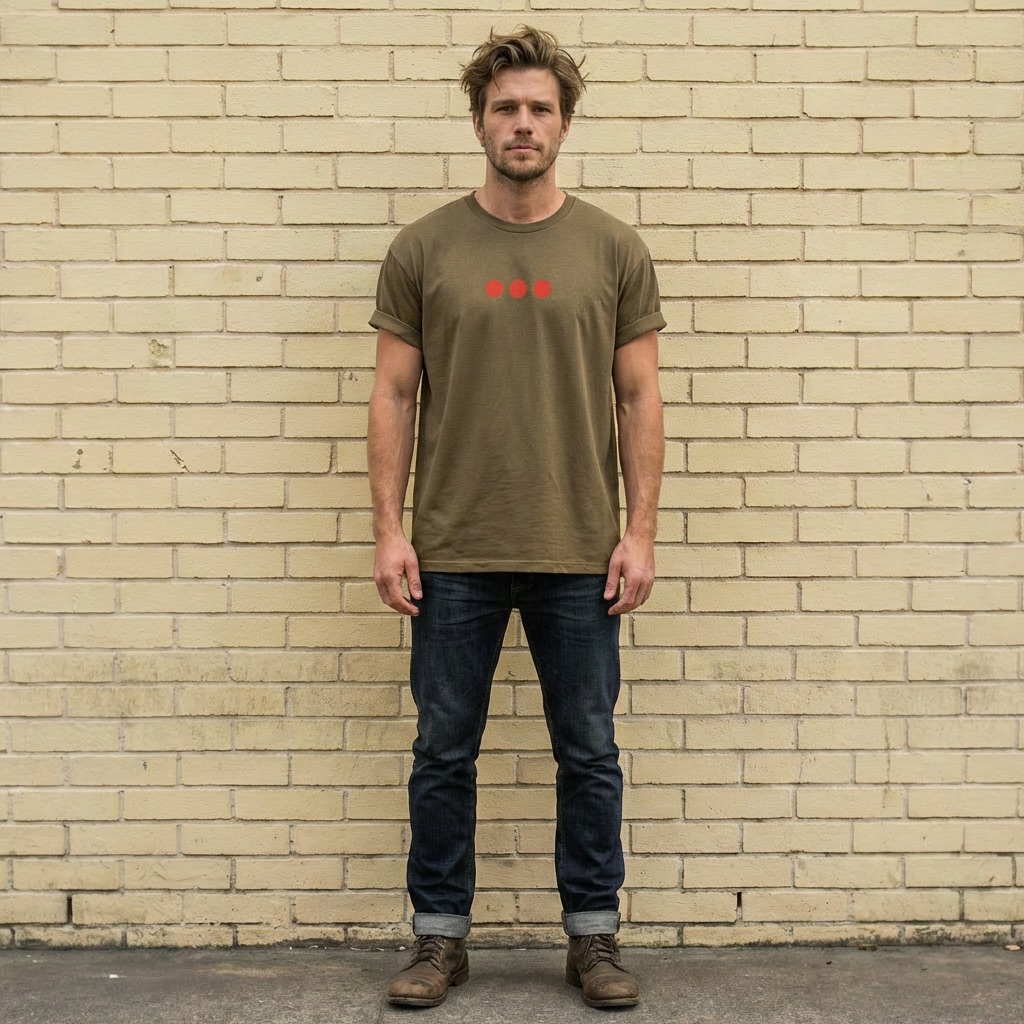 An everyday essential tee with a printed GAS triple dot design, a reminder that there is always more good to be done. Your daily uniform.