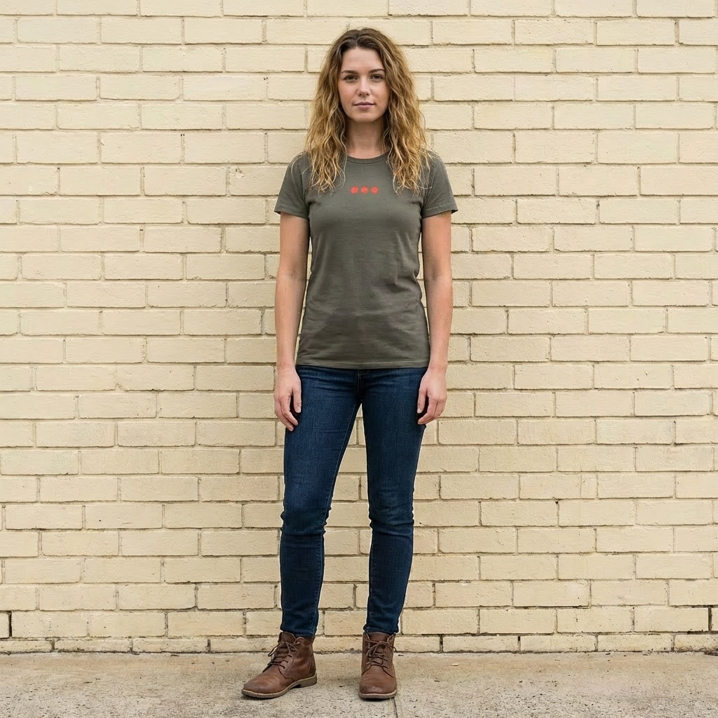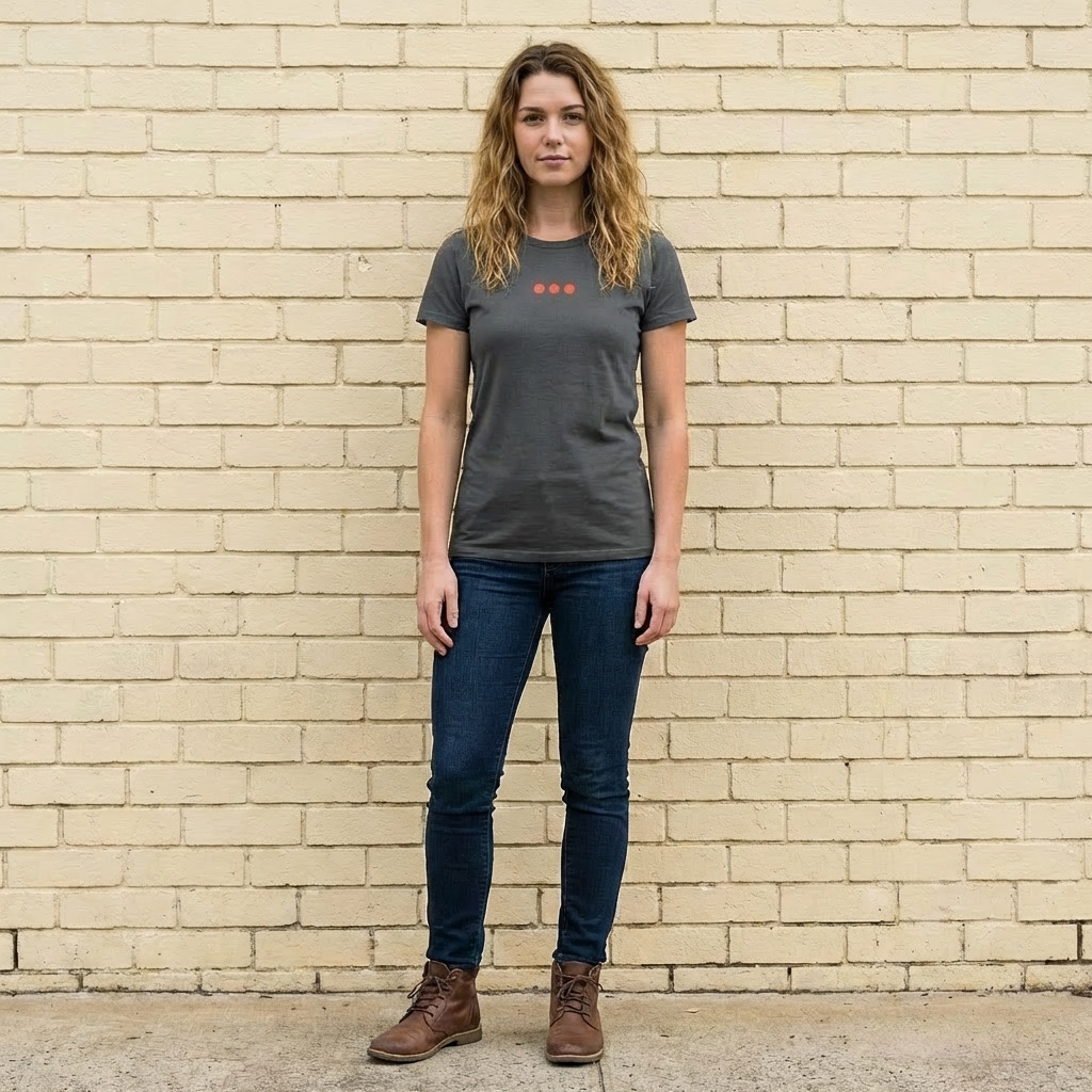 A relaxed fit women's tee with a printed GAS triple dot design, a reminder that there is always more good to be done. Never settle.